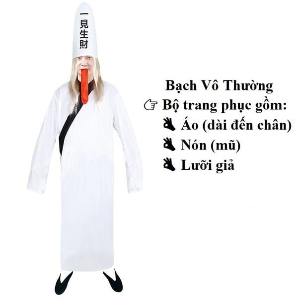 ---------------------------------------------------------------------------------------------------- CÁCH CHỌN SIZE (THEO CHIỀU CAO NGƯỜI MẶC): Bộ trang phục chỉ có 1 size (freesize) cho người mặc có chiều cao từ 160cm - 185cm BỘ TRANG PHỤC BAO GỒM: Áo liền quần, mũ, móng tay giả