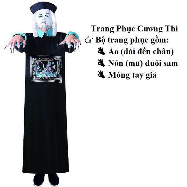 ---------------------------------------------------------------------------------------------------- CÁCH CHỌN SIZE (THEO CHIỀU CAO NGƯỜI MẶC): Bộ trang phục chỉ có 1 size (freesize) cho người mặc có chiều cao từ 160cm - 185cm BỘ TRANG PHỤC BAO GỒM: Áo liền quần, mũ, móng tay giả