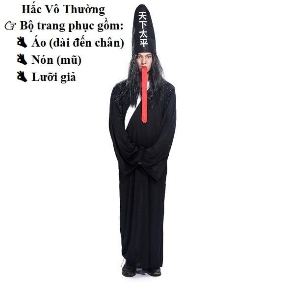 ---------------------------------------------------------------------------------------------------- CÁCH CHỌN SIZE (THEO CHIỀU CAO NGƯỜI MẶC): Bộ trang phục chỉ có 1 size (freesize) cho người mặc có chiều cao từ 160cm - 185cm BỘ TRANG PHỤC BAO GỒM: Áo liền quần, mũ, móng tay giả